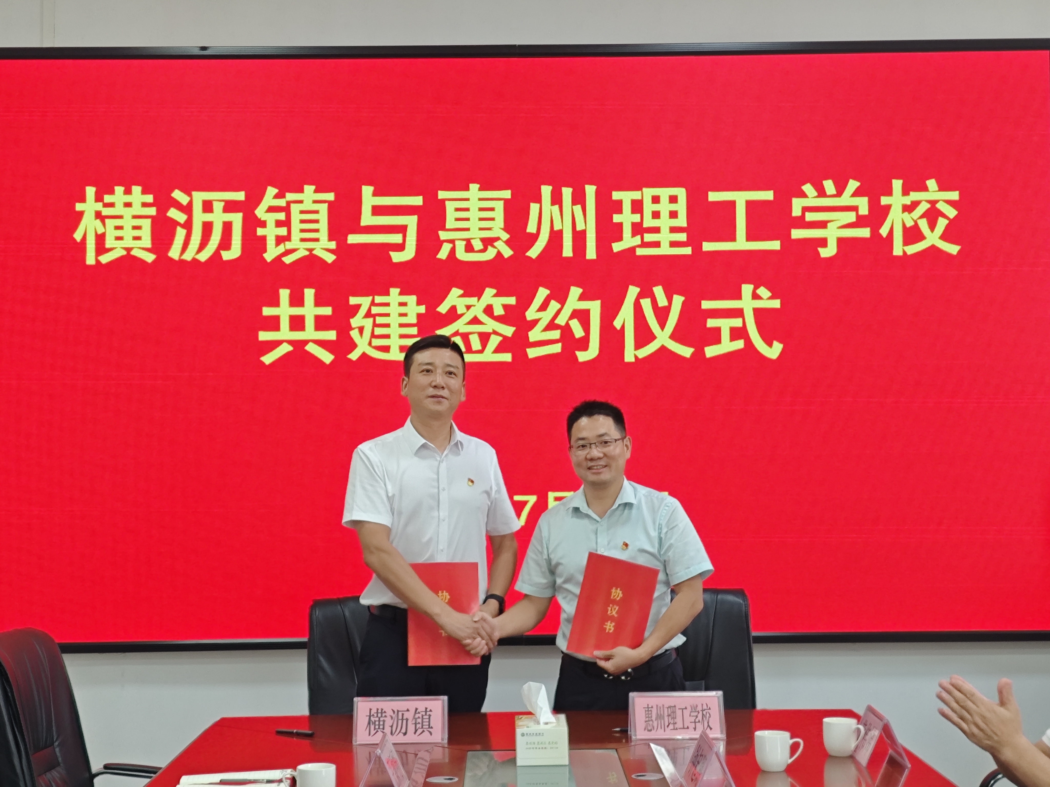 惠州市理工職業(yè)技術(shù)學(xué)校與橫瀝鎮(zhèn)簽訂《鎮(zhèn)校黨組織結(jié)對共建協(xié)議書》。