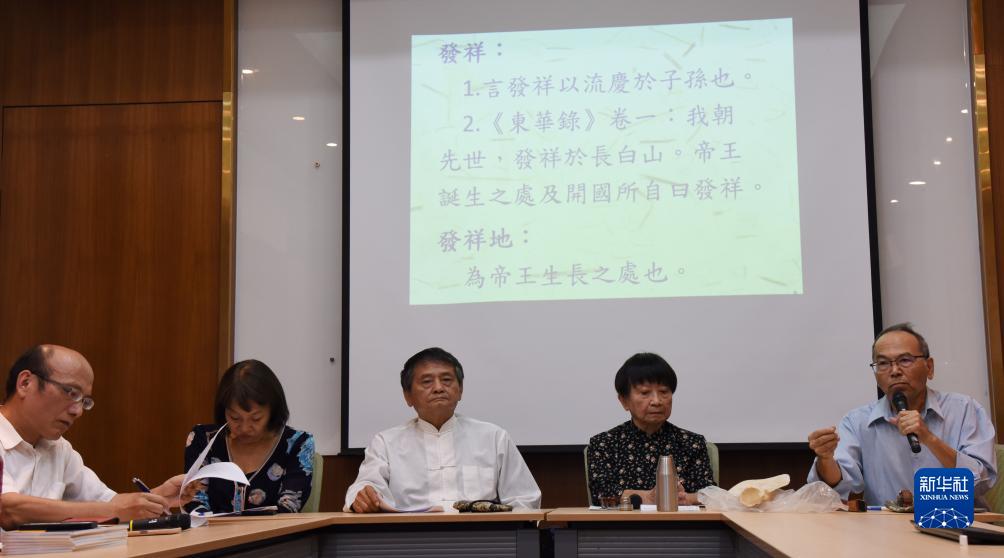 11月6日,臺(tái)灣師范大學(xué)退休教授潘朝陽(右一)在“歷史教育新三自運(yùn)動(dòng)協(xié)會(huì)”記者會(huì)上發(fā)言。新華社記者 劉斐 攝