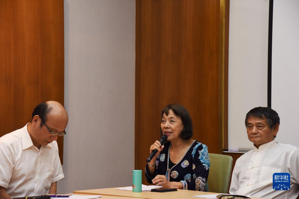 11月6日,臺(tái)灣知名作家、陽明大學(xué)(現(xiàn)陽明交通大學(xué))退休教授張曉風(fēng)(中)在“歷史教育新三自運(yùn)動(dòng)協(xié)會(huì)”記者會(huì)上發(fā)言。新華社記者 劉斐 攝