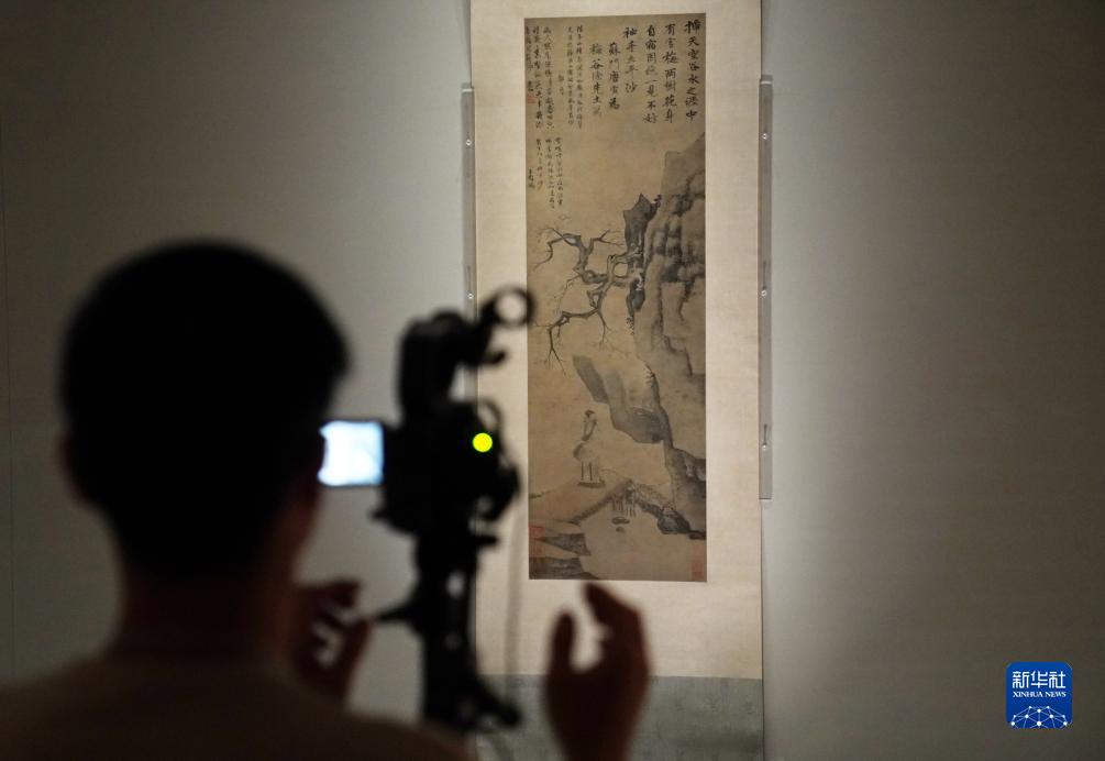 12月12日,在香港故宮文化博物館,記者在拍攝唐寅的《觀梅圖》。新華社記者 王申 攝