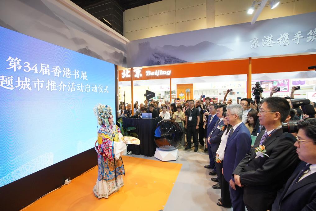 本屆香港書展首度以北京作為主題城市,以“京港攜手筑夢(mèng)·書香共繪華章”為主題。在北京展區(qū)的圖書展示展銷區(qū),北京出版集團(tuán)、首都經(jīng)濟(jì)貿(mào)易大學(xué)出版社、首都師范大學(xué)出版社等11家北京市屬出版單位展陳了文學(xué)類、人文社科類、科技類、少兒類等圖書近3000冊(cè)。
