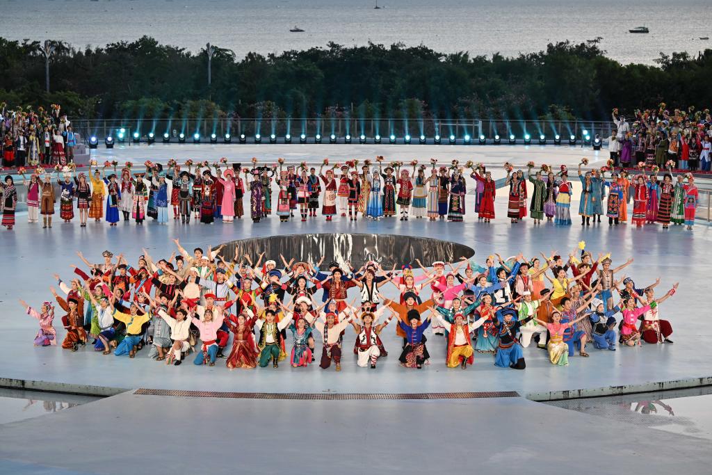 新華社三亞11月26日電(記者馬思嘉、嚴(yán)鈺景)天涯海角,椰風(fēng)陣陣。第十二屆全國(guó)少數(shù)民族傳統(tǒng)體育運(yùn)動(dòng)會(huì)民族大聯(lián)歡活動(dòng)26日在三亞舉行。身著不同民族服飾的年輕人夾道歡迎天南海北的來(lái)客。在喧騰的樂(lè)聲中,各族同胞載歌載舞,交換禮物,結(jié)識(shí)朋友,在大聯(lián)歡、大團(tuán)圓中留下難忘回憶。