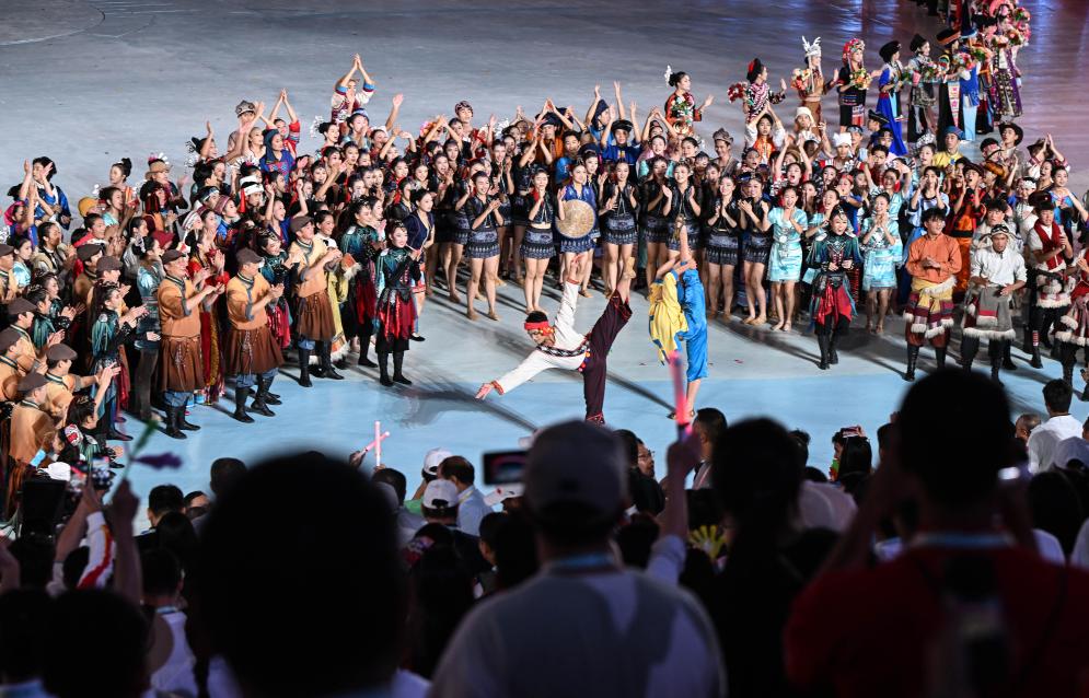 “在賽事之外,能有這樣盛大的民族大聯(lián)歡活動(dòng),讓我們看到56個(gè)民族各自的文化,并且能有機(jī)會(huì)互相交流認(rèn)識(shí),是非常棒的體驗(yàn)。”澳門代表團(tuán)表演項(xiàng)目運(yùn)動(dòng)員黃梓軒說(shuō)。他之前只在課本上了解過(guò)56個(gè)民族,如今親眼看到,非常震撼。作為澳門大學(xué)一名傳統(tǒng)文化藝術(shù)領(lǐng)域的教師,他拍了許多照片,打算回去和同學(xué)們分享。