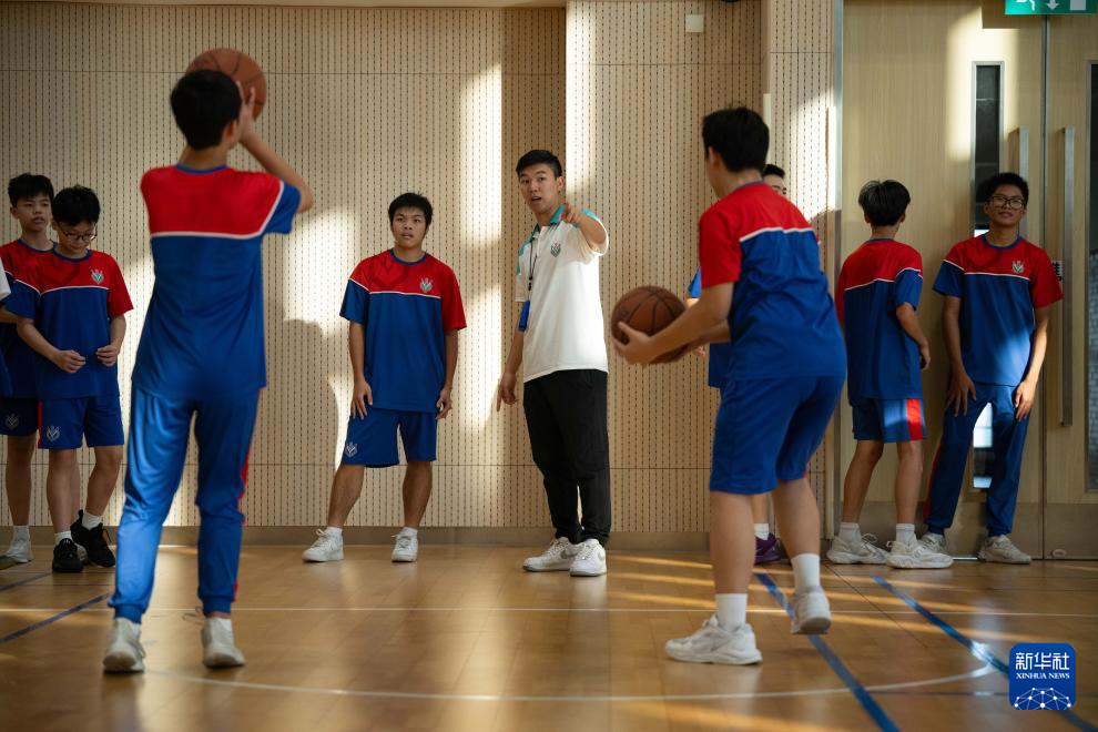 11月12日,澳門中華總商會附設(shè)青洲中學(xué)體育老師梁駿朗帶領(lǐng)學(xué)生進行籃球訓(xùn)練。新華社發(fā)(張金加攝)