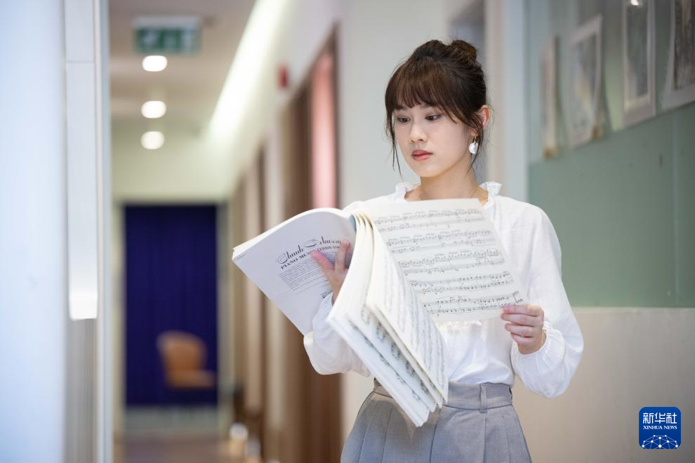 11月12日,澳門青年音樂家陳宜在看琴譜。新華社發(fā)(張金加攝)