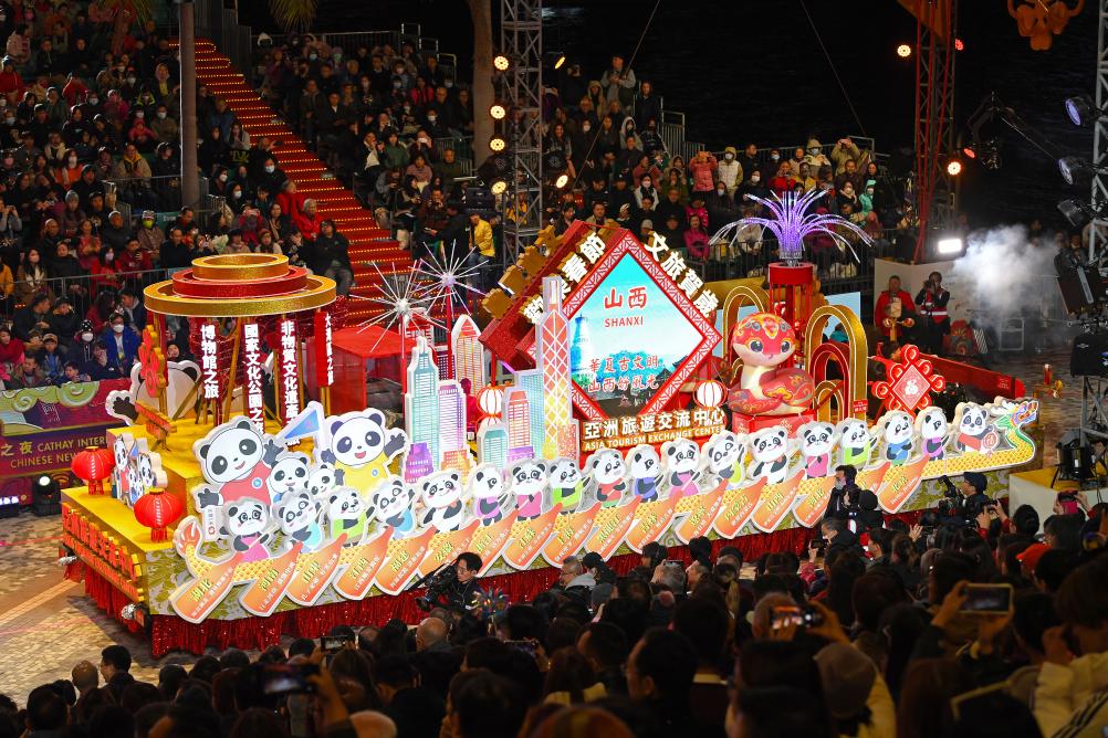 香港特區(qū)行政長官李家超致辭表示,特色花車和來自香港、內(nèi)地及世界各地的隊伍將為大家呈現(xiàn)華麗繽紛的匯演,向全世界展示香港作為“盛事之都”的無限活力。去年,訪港旅客近4500萬人次,按年增長超三成,香港市面更添熱鬧。新一年,香港將繼續(xù)好事連連、喜樂連連、祝福連連,譜寫更多好故事。
