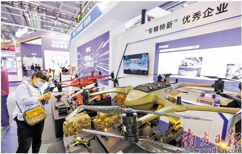 珠三角堅持制造業(yè)當家,瞄準“專精特新”。圖為高交會深圳“專精特新”企業(yè)展上的無人機企業(yè)展臺。南方日報記者 魯力 攝