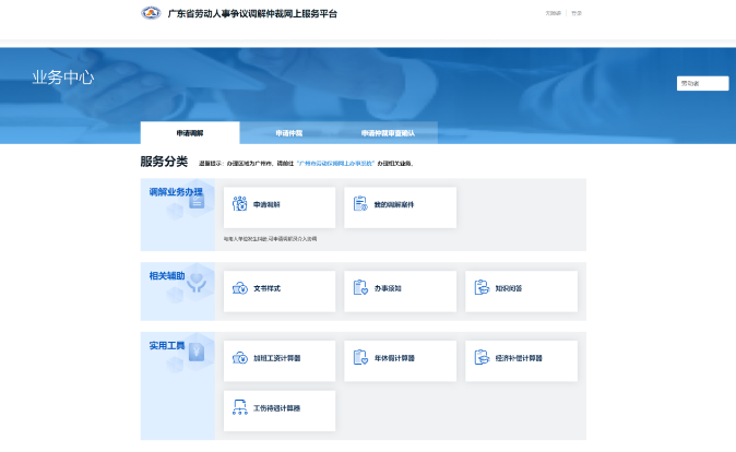 廣東省勞動(dòng)人事爭(zhēng)議調(diào)解仲裁網(wǎng)上服務(wù)平臺(tái)網(wǎng)址(https://ggfw.hrss.gd.gov.cn/LWPQ/#/wssqzc/)。通訊員供圖