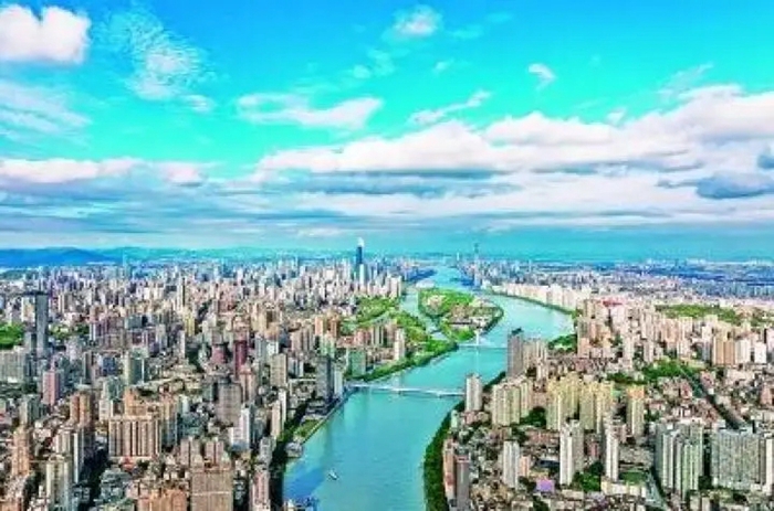廣州珠江兩岸城市建筑在藍天白云映襯下,壯美如畫。魏勁松攝/光明圖片