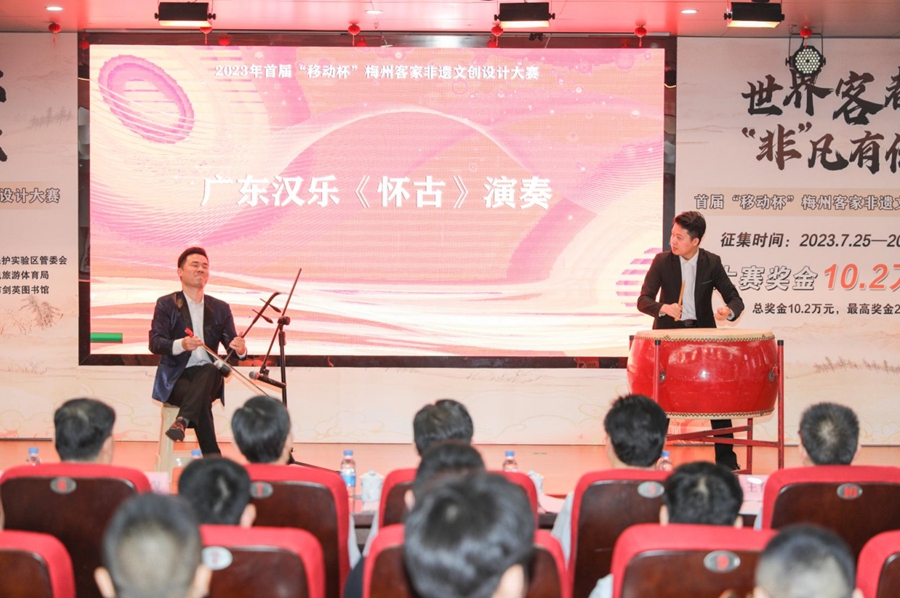 首屆“移動杯”梅州客家非遺文創(chuàng)設(shè)計大賽啟動儀式現(xiàn)場廣東漢樂表演。吳騰江 攝