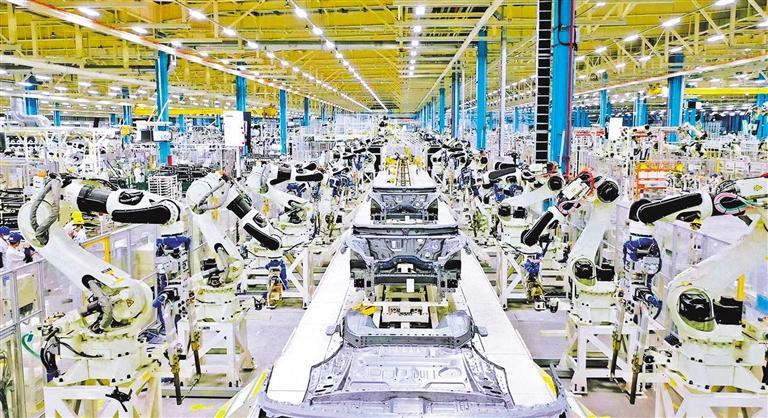 南沙廣汽豐田新能源汽車產(chǎn)能擴(kuò)建項(xiàng)目二期總裝車間。(資料圖片)