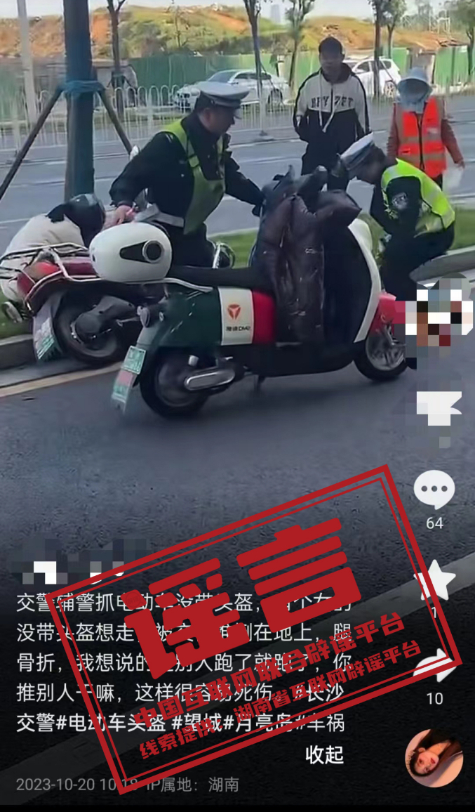 謠言:長(zhǎng)沙交警執(zhí)法時(shí)推倒電動(dòng)車?