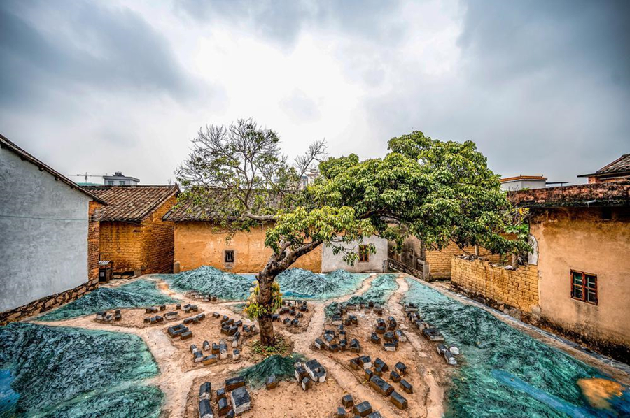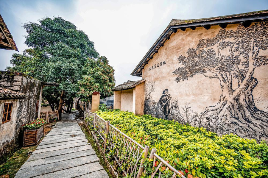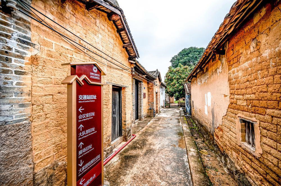 沿著縱隊(duì)路前進(jìn),穿梭于游擊巷間,看著成片低矮的青瓦泥磚屋與墻面上繪寫的“東江縱隊(duì)之歌”,濃郁的革命氣息撲面而來(lái)。這是位于東莞市大嶺山鎮(zhèn)大王嶺村的大嶺山抗日根據(jù)地舊址。廣東東江縱隊(duì)紀(jì)念館、大嶺山抗日根據(jù)地舊址講解員陳夢(mèng),在此向采訪團(tuán)介紹廣東人民抗日游擊隊(duì)第三大隊(duì)開辟大嶺山抗日根據(jù)地的歷史。
