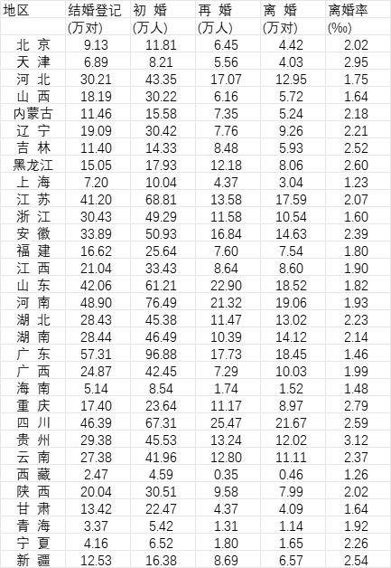 根據(jù)《中國(guó)統(tǒng)計(jì)年鑒2023》的數(shù)據(jù),去年我國(guó)結(jié)婚總?cè)藬?shù)最多的是廣東省,達(dá)到了57.31萬(wàn)對(duì),也是唯一一個(gè)結(jié)婚總?cè)藬?shù)超過(guò)50萬(wàn)對(duì)的省份:河南位居第二,為48.9萬(wàn)對(duì);四川位居第三,為46.39萬(wàn)對(duì)。