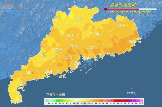 23日,全省晴到多云,早晨最低氣溫:韶關、河源和梅州市縣11~14℃,雷州半島18~21℃,其余市縣14~17℃。