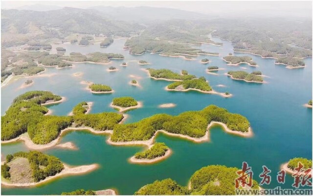 廣東孔江國家濕地公園位于北江源頭區(qū),園內點綴著眾多島嶼,形成了山外有山、山重水復、山環(huán)水抱的百島湖奇景。南方日報記者 張令 通訊員 林蔭 攝