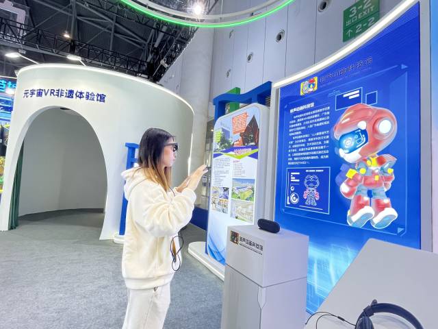 “《尋找超級(jí)棒棒糖》MR動(dòng)漫游戲,利用了可交互式的MR技術(shù)與豬豬俠IP故事相結(jié)合,參展觀眾隨時(shí)隨地可以沉浸式跟著豬豬俠展開(kāi)探險(xiǎn),獲得跨次元交互的樂(lè)趣!闭箙^(qū)負(fù)責(zé)人向記者介紹,參展觀眾可以通過(guò)數(shù)字交互內(nèi)容和場(chǎng)景,走進(jìn)元宇宙虛擬世界,感受科技智能技術(shù)帶來(lái)的虛實(shí)融合體驗(yàn)。