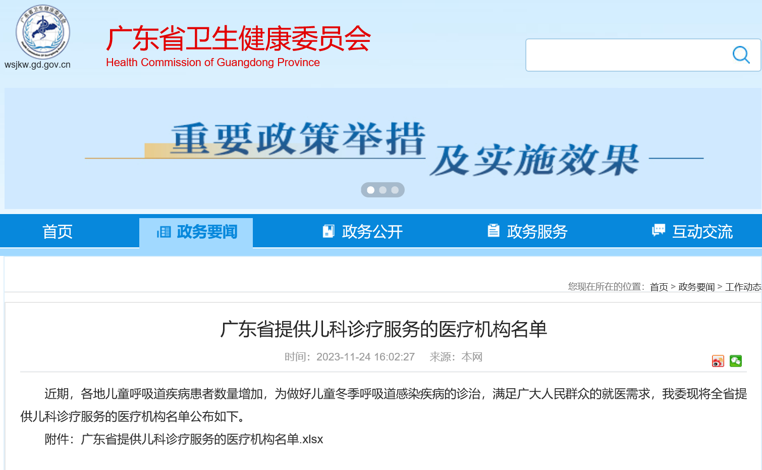 11月24日,廣東省衛(wèi)生健康委官網(wǎng)公布廣東省提供兒科診療服務(wù)的醫(yī)療機(jī)構(gòu)名單,全省共有756家。