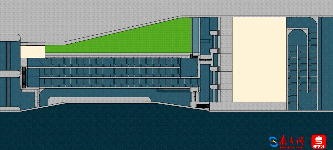“旱季的時候,水比較淺,魚群聚集難度大。但尾水池一側(cè)因?yàn)楹拥纵^深,水位保持好,魚群比較穩(wěn)定。所以我們決定在底部再設(shè)置進(jìn)魚口,并在進(jìn)水池魚道設(shè)置兩個水閘,根據(jù)季節(jié)性水位控制閘門開閉,最大程度保證了魚道不同時期的利用率,給不同魚類在不同時期的洄游創(chuàng)造了可能!眲⒋ㄕf。