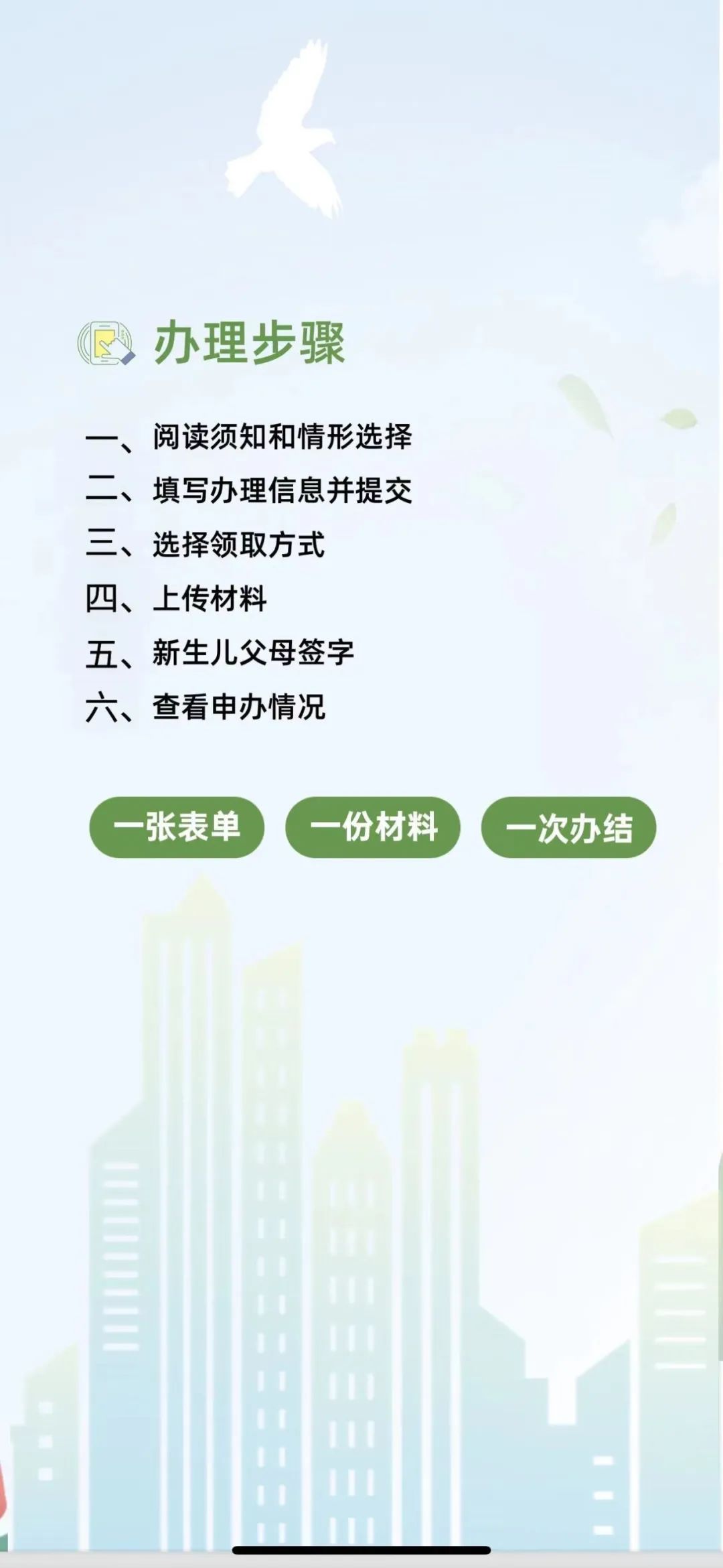 這7項集成化辦理的事項分別是:生育登記憑證辦理、出生醫(yī)學證明申領、預防接種電子檔案申領、國(境)內(nèi)出生登記、城鄉(xiāng)居民參保登記(基本醫(yī)療保險)、社會保障卡申領和城鄉(xiāng)居民基本醫(yī)療保險費申報(新生兒醫(yī)保繳費)。