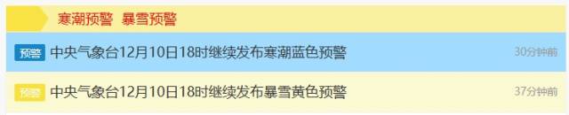 在10日的18時(shí),中央氣象臺(tái)繼續(xù)發(fā)布寒潮藍(lán)色預(yù)警和暴雪黃色預(yù)警。