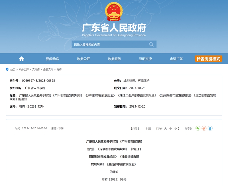 南方網(wǎng)訊 12月20日,廣東省政府網(wǎng)站發(fā)布了廣州、深圳、珠江口西岸、汕潮揭、湛茂五大都市圈發(fā)展規(guī)劃(以下簡稱“規(guī)劃”)。規(guī)劃期為2023—2030年,展望至2035年,為五大都市圈明確發(fā)展“路線圖”。