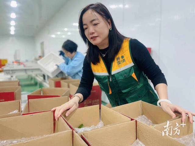 年關(guān)將至,砂糖橘的銷售供不應(yīng)求,陳立志和農(nóng)戶一起打包。