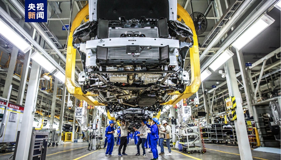 △全國每4輛新能源汽車就有1輛是“廣東造” 圖為廣汽埃安新能源汽車生產線