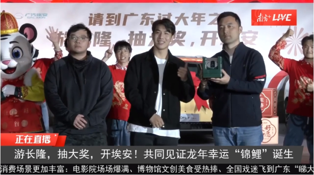 好人啟好運,最暖是廣東。2月15日,大年初六,由南方+、觸電新聞主辦的“請到廣東過大年之游長隆、抽大獎、開埃安”活動繼續(xù)送出好運。隨著“廣東好人”張祖鑫按下開獎鍵,身份證號為“36****19870326003X”的江西游客,成為9萬名游客中的幸運兒。他將獲得一輛全新廣汽埃安AION Y Plus智能純電車的使用權(quán)。