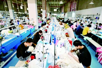廣東省清遠市清城區(qū)石角鎮(zhèn),工人們正在制衣車間內(nèi)趕訂單、忙生產(chǎn)。資料圖片