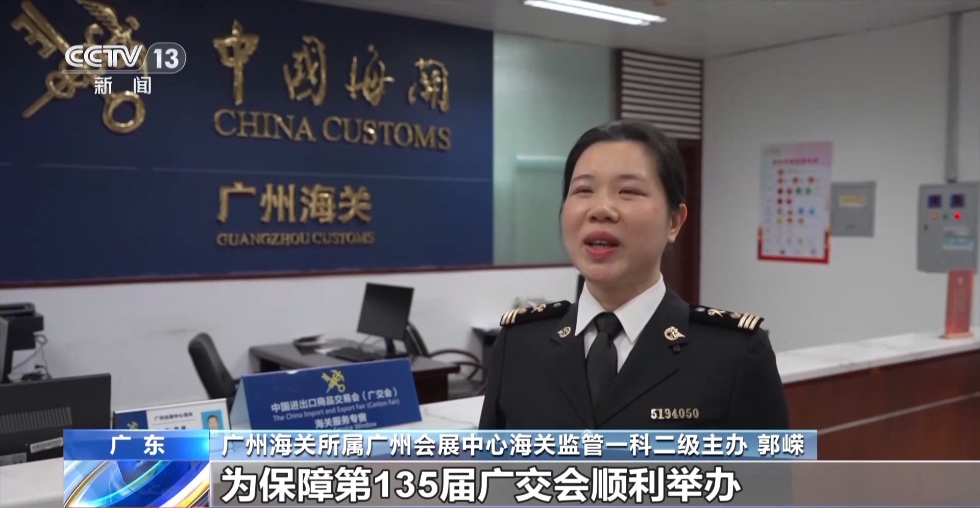 廣州海關(guān)所屬?gòu)V州會(huì)展中心海關(guān)監(jiān)管一科二級(jí)主辦 郭嶸:為保障第135屆廣交會(huì)順利舉辦,我們?cè)跇I(yè)務(wù)現(xiàn)場(chǎng)設(shè)立廣交會(huì)服務(wù)專(zhuān)窗,全天候接受參展企業(yè)預(yù)約通關(guān),優(yōu)先辦理申報(bào)、查驗(yàn)、抽樣、檢測(cè)等手續(xù)。同時(shí)在廣州白云國(guó)際機(jī)場(chǎng)、琶洲港澳客運(yùn)碼頭開(kāi)辟“廣交會(huì)來(lái)賓便捷通道”,保障廣交會(huì)進(jìn)出境人員、展品便捷通關(guān)。