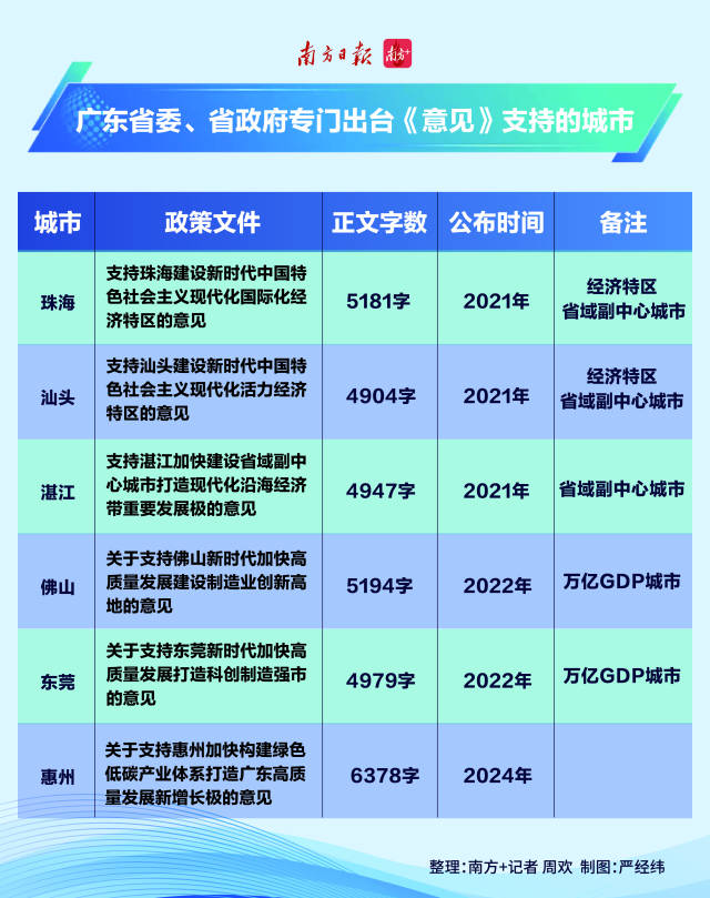2021年以來,為支持各地加快高質(zhì)量發(fā)展,廣東省委、省政府先后為珠海、汕頭、湛江、佛山、東莞出臺《意見》。
