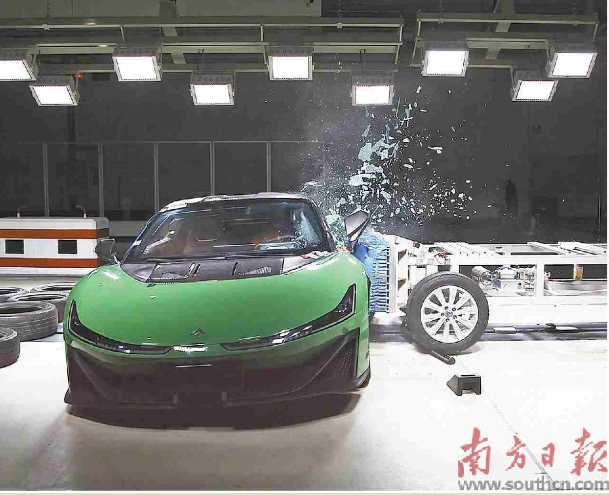 中汽研廣州檢驗(yàn)中心碰撞試驗(yàn)室正進(jìn)行汽車側(cè)面碰撞試驗(yàn)。 南方日報記者 李永智 張迪 通訊員 江雨璇 攝