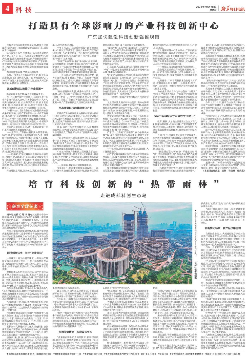 廣東正持續(xù)在產(chǎn)業(yè)科技互促雙強上下功夫,加快構(gòu)建“基礎(chǔ)研究+技術(shù)攻關(guān)+成果轉(zhuǎn)化+科技金融+人才支撐”全過程創(chuàng)新鏈,以科技創(chuàng)新驅(qū)動生產(chǎn)力向新的質(zhì)態(tài)躍升,不斷增強高質(zhì)量發(fā)展硬實力。