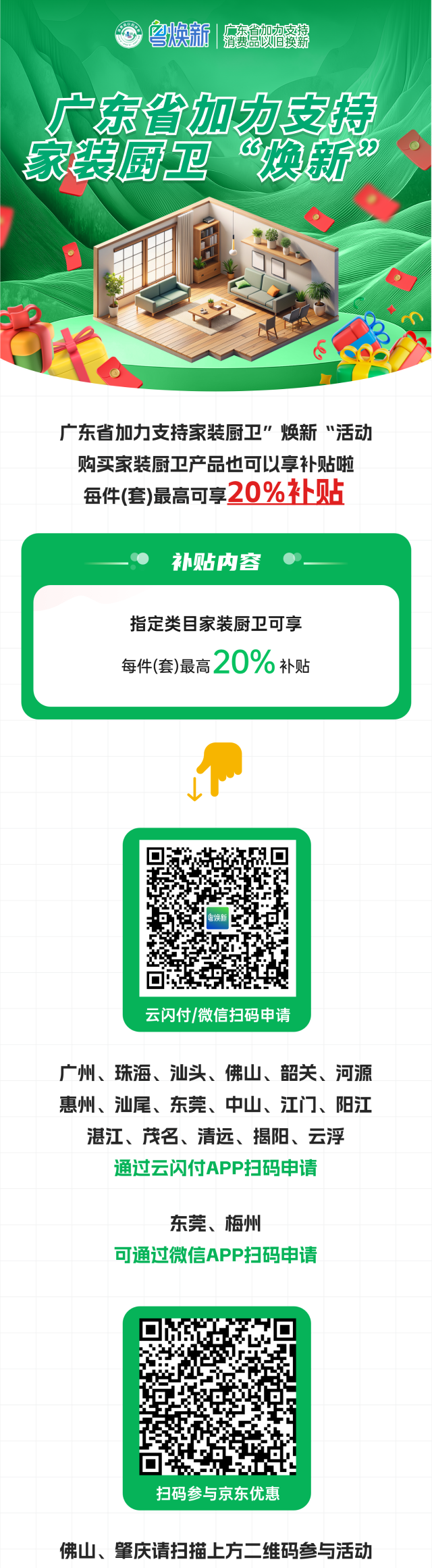 日前,廣東正式啟動 2024 年家裝廚衛(wèi)“煥新”活動,該活動舉辦至 2024 年底,對個人消費者購買智能家居產(chǎn)品,舊房裝修、廚衛(wèi)等局部改造所需產(chǎn)品,居家適老化改造所需產(chǎn)品給予補貼。