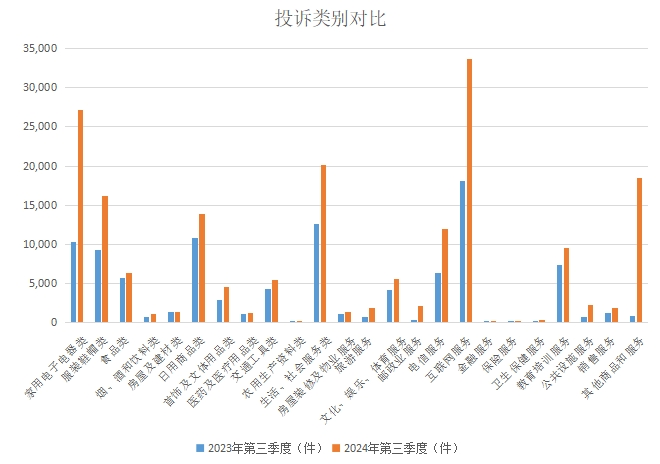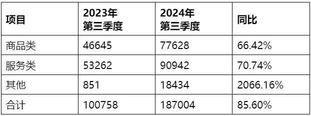 表1:2023年、2024年第三季度商品類、服務(wù)類投訴量對比