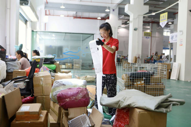“剛進直播間的大家,可以點個關(guān)注,任何產(chǎn)品,我們都是24小時發(fā)貨!迸c此同時,廣州十三行服裝批發(fā)市場檔主石頭也在自己的直播間積極互動。
