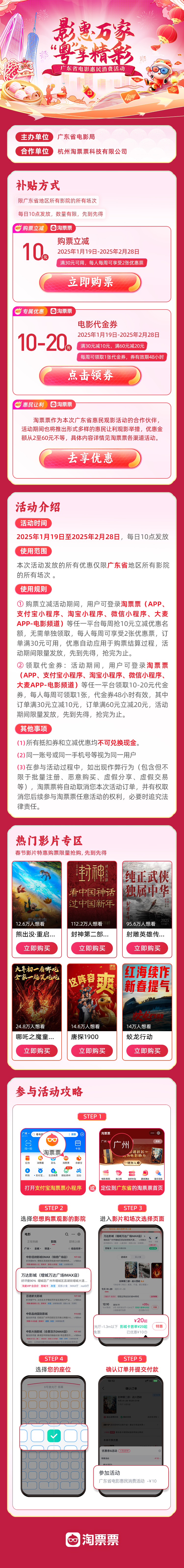 活動期間,觀眾可登錄淘票票活動專題頁,領(lǐng)取購票立減10元優(yōu)惠及10至20元的電影代金券。