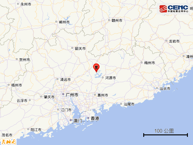 據(jù)中國地震臺網(wǎng)正式測定,2月16日9時(shí)46分在廣東河源市東源縣發(fā)生2.9級地震(有感),震源深度9公里,震中位于北緯23.92度,東經(jīng)114.47度。