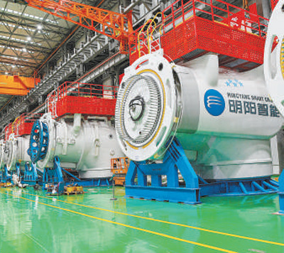 明陽(yáng)風(fēng)電主機(jī)生產(chǎn)車間。 梁文棟攝