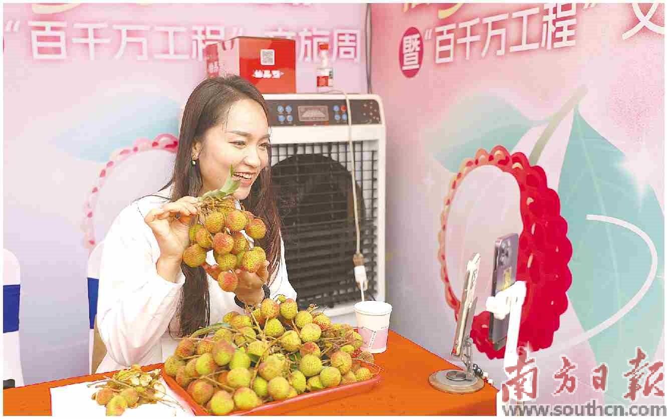 網(wǎng)絡(luò)達(dá)人在活動現(xiàn)場直播帶貨。南方日報見習(xí)記者 吳東俊 攝
