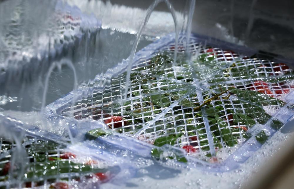 ↑6月4日,在廣東茂名高州市廣東銘景農業(yè)發(fā)展有限公司,荔枝進行預冷處理。