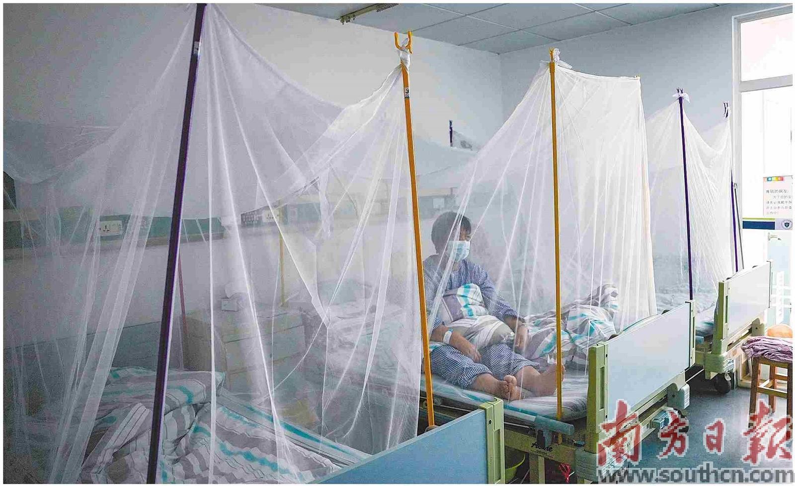 在佛山樂從醫(yī)院,收治基孔肯雅熱病人的每張病床都用蚊帳進行隔離。南方日報記者 董天健 戴嘉信 攝