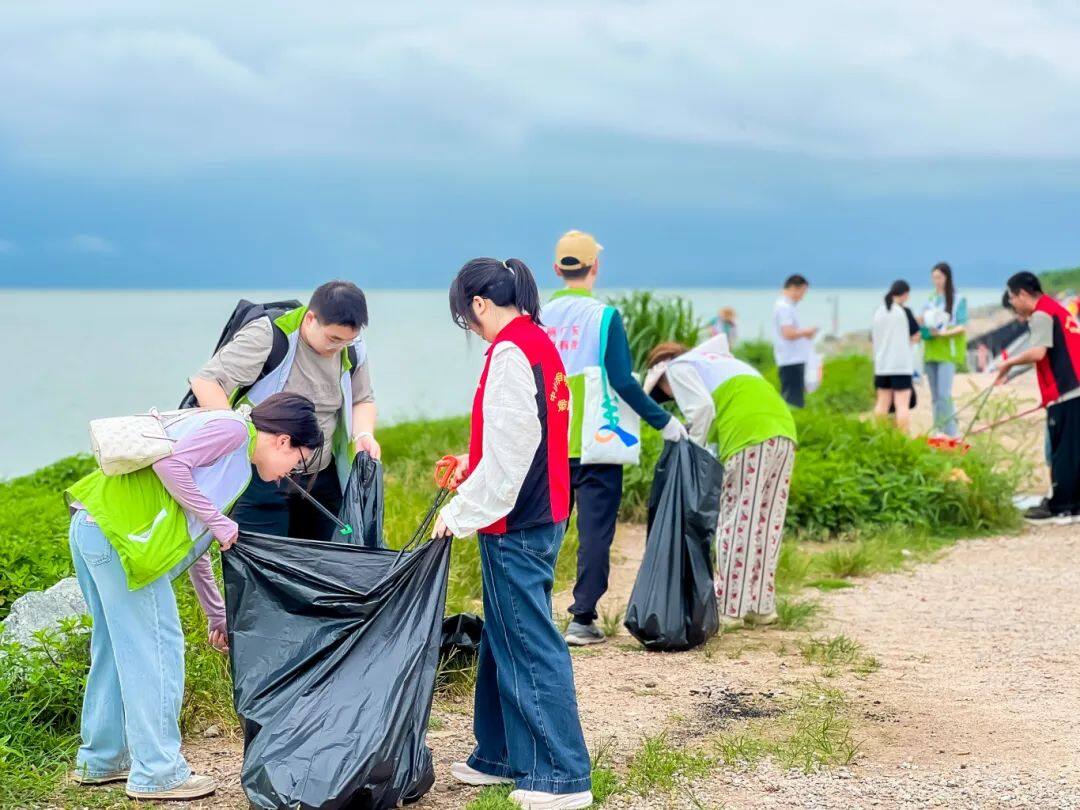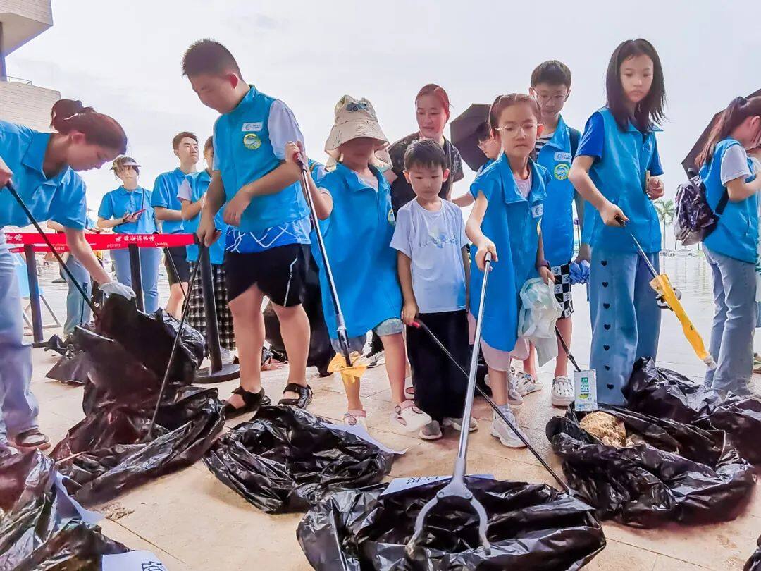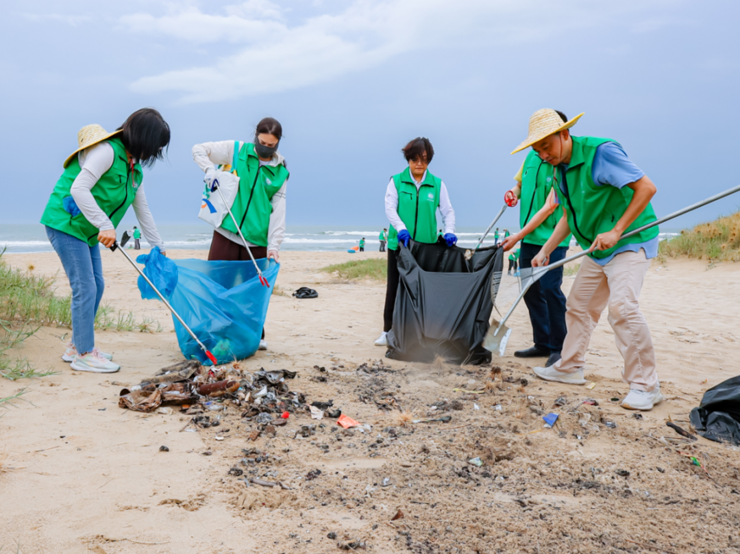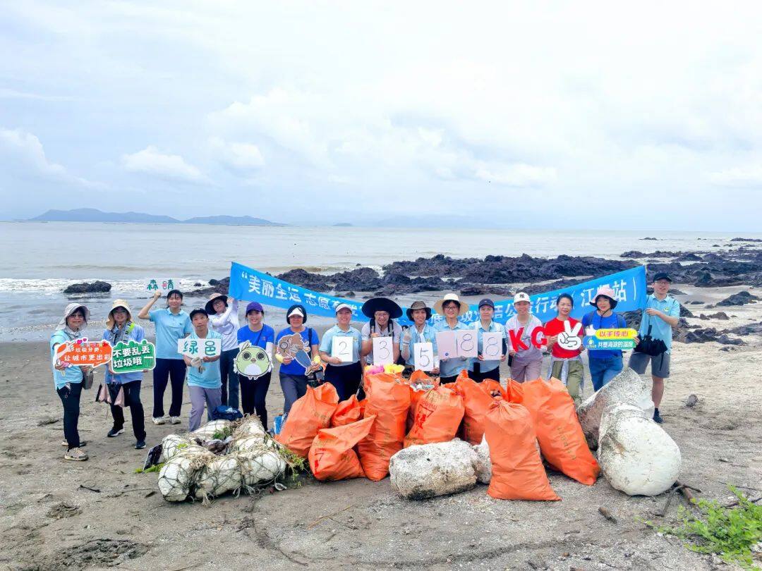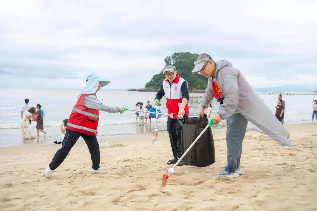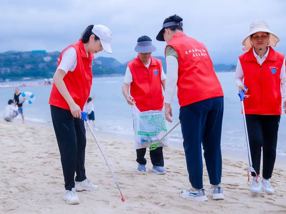 啟動儀式后,志愿者開展凈灘撿跑,清理沿途的海灘垃圾。集中收集的垃圾經再生處理將制作美麗吉祥物。