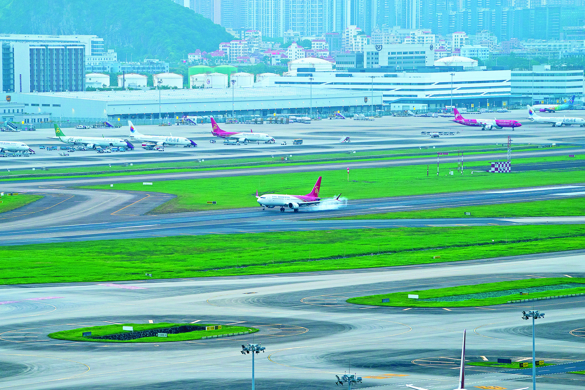 8月26日,深圳航空的飛機(jī)在深圳機(jī)場(chǎng)三跑道進(jìn)行驗(yàn)證飛行。新華社發(fā)