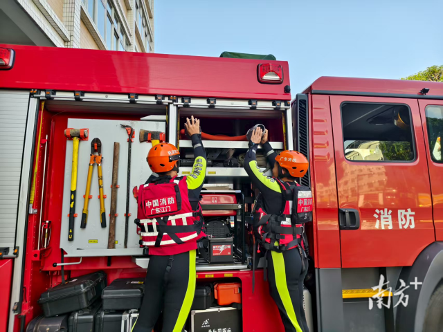 消防救援人員正在對裝備進(jìn)行清點(diǎn)維護(hù)。供圖:粵消宣