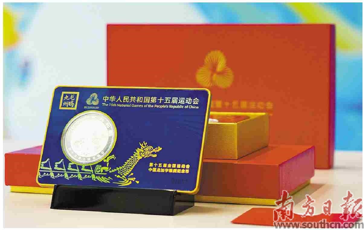 十五運(yùn)會(huì)中國(guó)龍加字銀質(zhì)紀(jì)念幣。十五運(yùn)會(huì)廣東省執(zhí)委會(huì)供圖