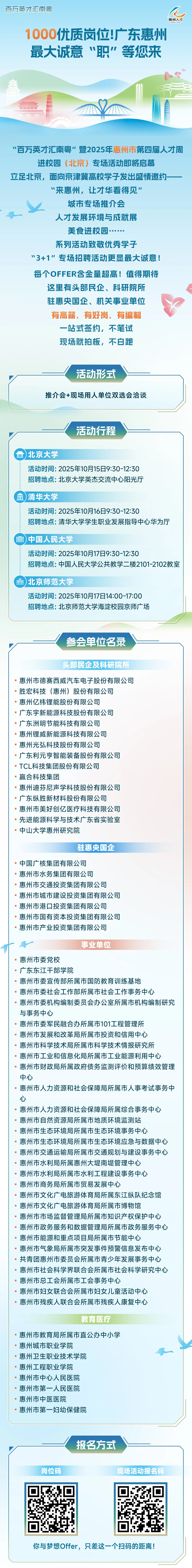 百萬英才匯南粵丨1000優(yōu)質崗位!廣東惠州,最大誠意“職”等您來