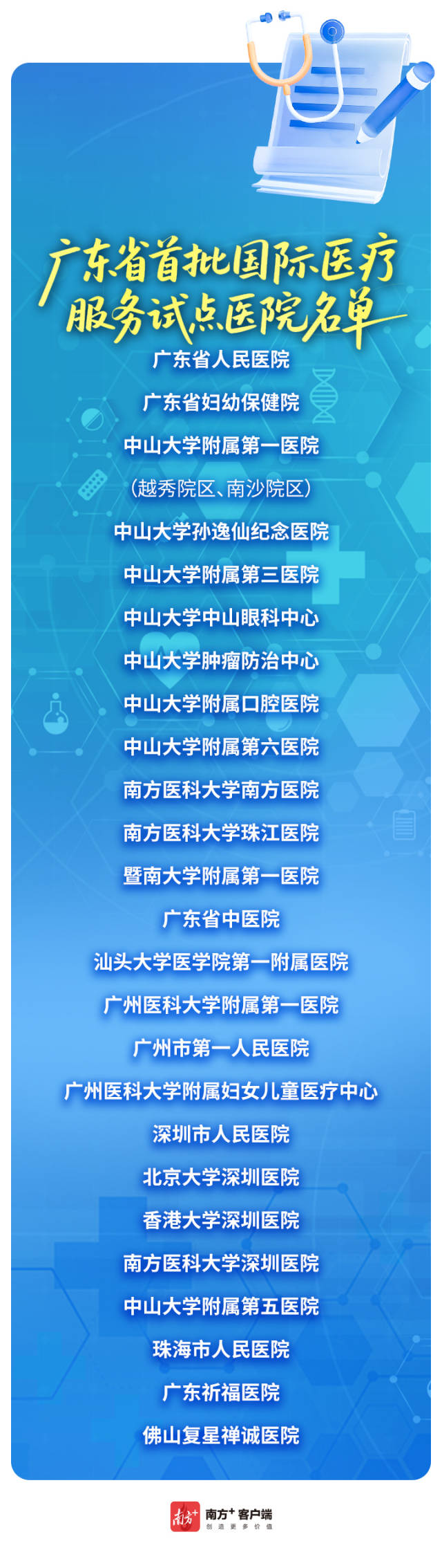 3月26日,廣東省衛(wèi)生健康委、省醫(yī)保局、省藥監(jiān)局聯(lián)合公布首批廣東省國際醫(yī)療服務試點醫(yī)院名單,包括廣東省人民醫(yī)院、中山大學附屬第一醫(yī)院等在內的25家醫(yī)院獲選,標志著廣東省國際醫(yī)療服務試點工作正式落地實施。