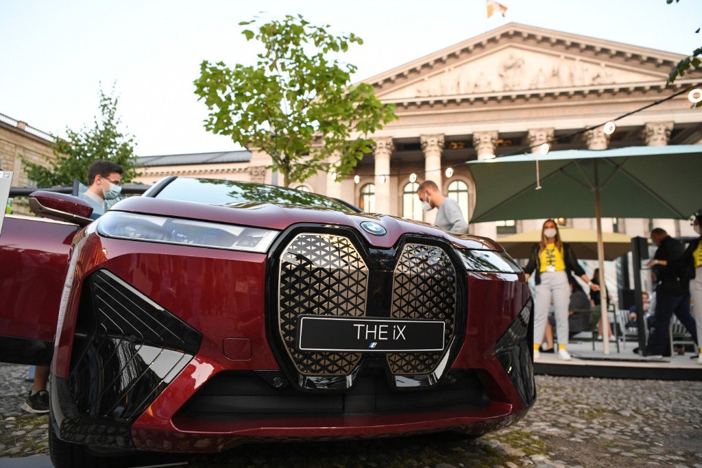 這是2021年9月8日在德國慕尼黑國際車展寶馬汽車戶外展區(qū)拍攝的一臺寶馬iX電動(dòng)車。新華社記者逯陽攝